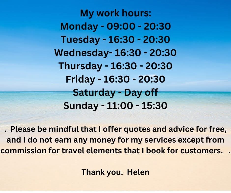 Please contact Helen for a no obligation quote or for any travel advice: