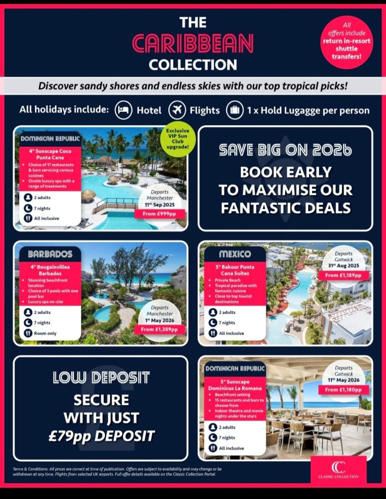Amazing offers for Caribbean destinations! Includes flights, hotel, hold luggage and transfers. Get in touch now for more information.