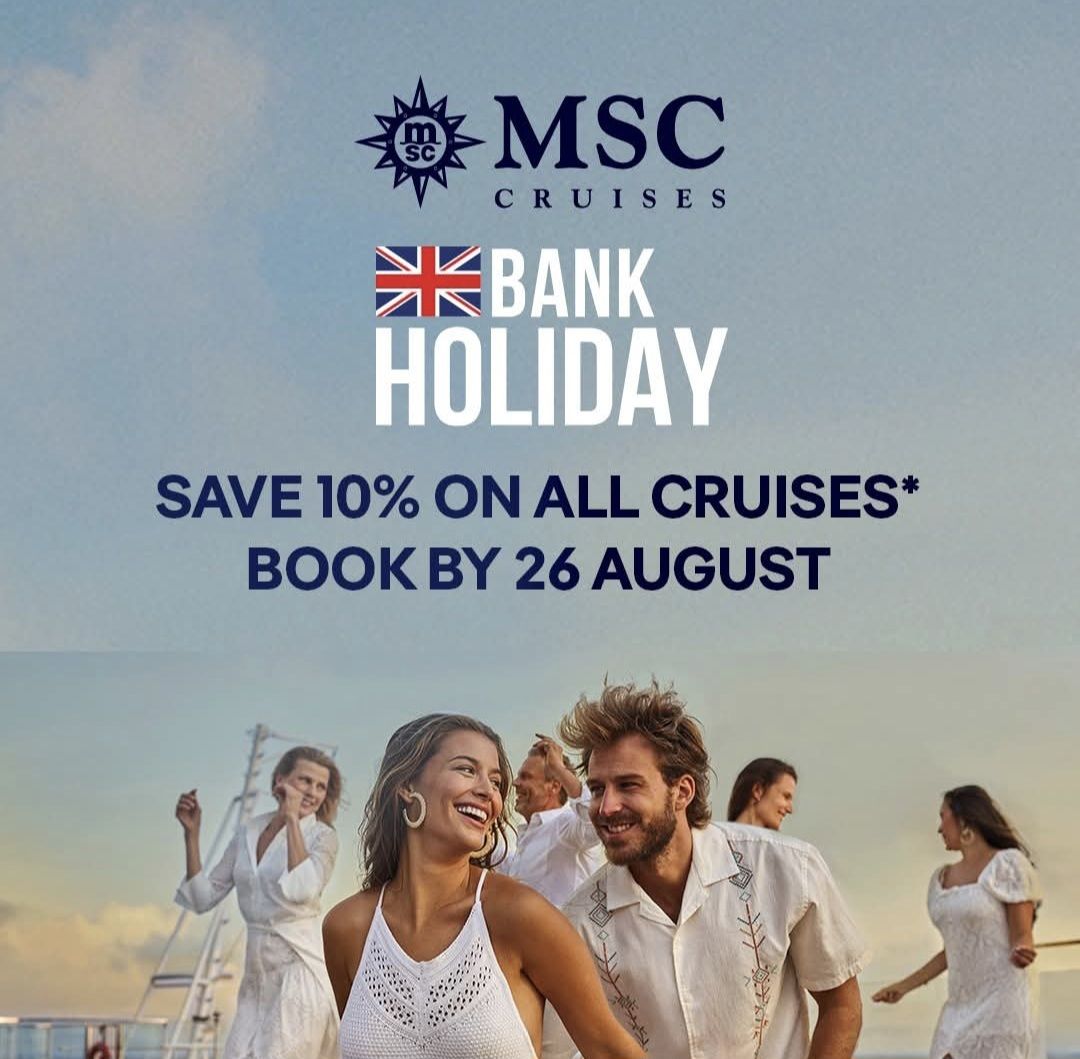 π MSC cruises Bank Holiday Offer starts NOW β your chance to swap the everyday for extraordinary adventures! β¨ 10% OFF all cruises (excluding World Cruises) β¨ MSC Voyagers Club members enjoy an extra 5% OFF! βοΈ Sunshine, savings & serious getaway goals await. Donβt miss out β your dream cruise is just a click … Continue reading ππ’ Bank Holiday Escape Alert! π’π