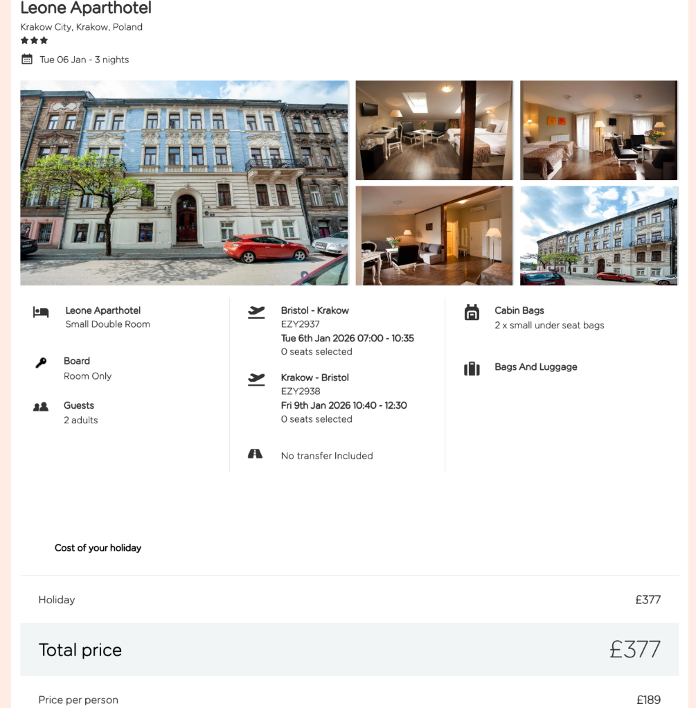 ✈️ Flying from Bristol Airport on Tues 6th Jan 2026 for 3 nights (other airports are available for extra)