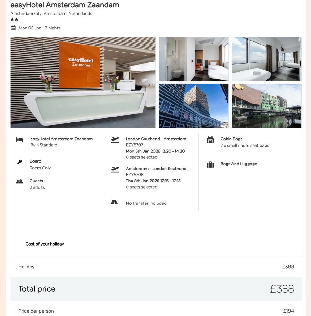 🛏️ Easyhotel Amsterdam Zaandan – Room only